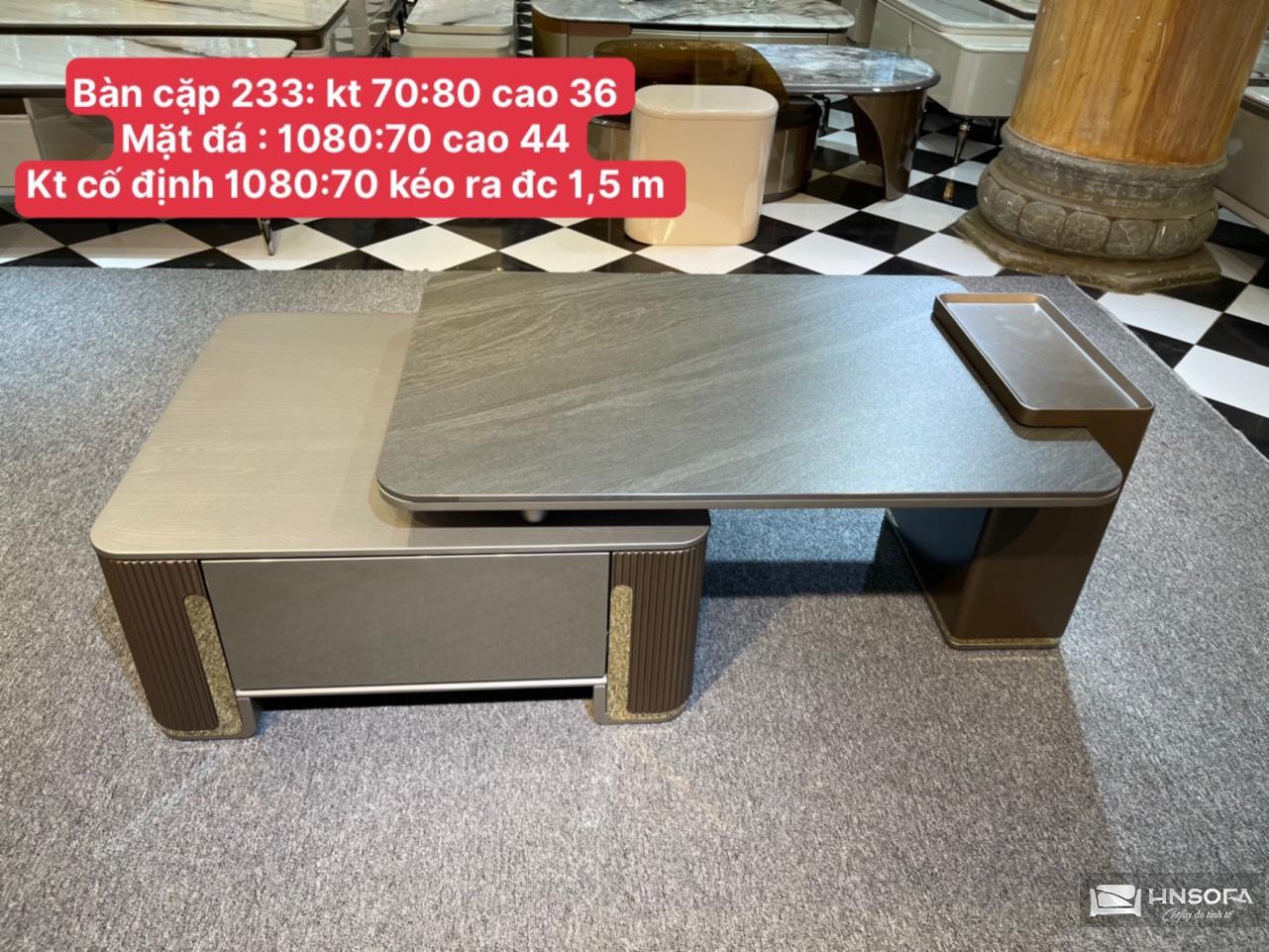 - Chất liệu: Bàn trà khung gỗ công nghiệp kết hợp cùng mặt đá cao cấp chống trầy xước, thấm nước.